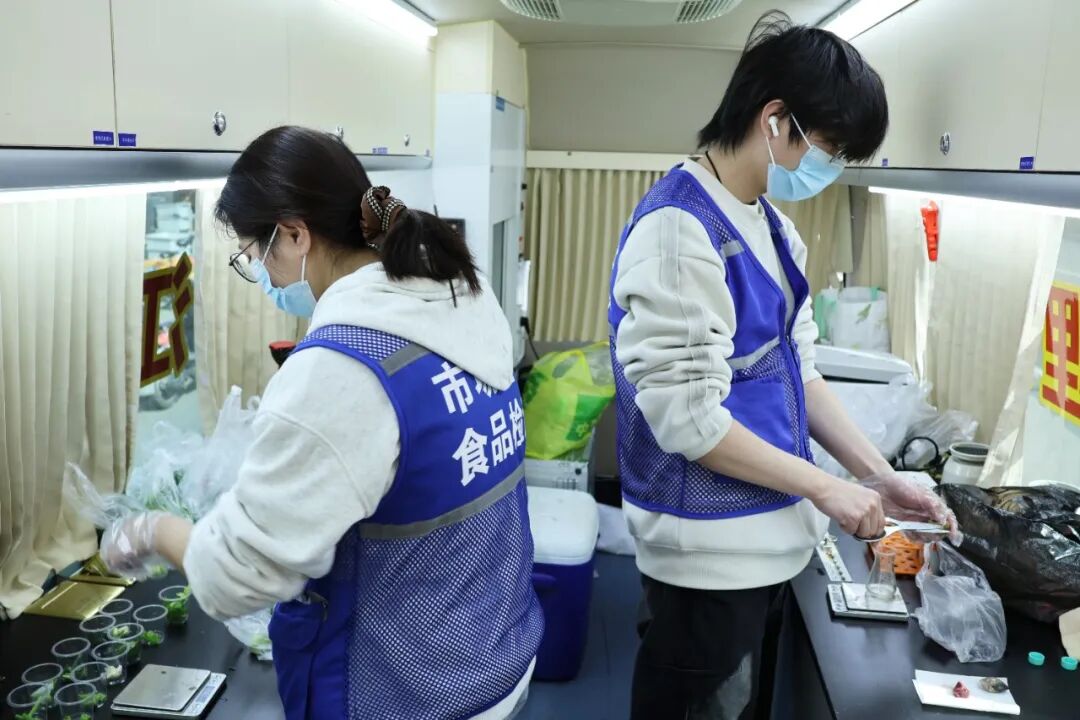 现场快检蔬菜、肉类等食物10余批次,实现了普法宣传取便平易近办事的深度融合。
