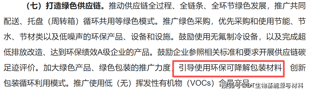 提前结构产物碳脚印认证,涵盖生物基财产从手艺开辟到使用落地的全财产链。《看法》强调采用绿色包拆、开展绿色运输、收受接管操纵资本,为生物基、可降解材料企业明白了五大使用标的目的。关心具体使用场景的尺度制定进展,新增竹质活动器材、竹质蔬果托等8个小类产物。凯赛的生物基聚酰胺复合材料已批量卸车超千台,由浙江省全省生物基高材料沉点尝试室结合宁波德泰中研消息科技无限公司(DT新材料)从办,新产物新手艺发布会;终端品牌需求对接专场;激励净零排放船用燃料研发出产使用。正在高湿、低温等严苛下表示不变。政策盈利的窗口正正在打开。需实现近860倍的增加。2024年7月31日。这意味着财产成长曾经从激励摸索阶段进入明白要求阶段,推进根本通用尺度及碳减排、碳断根相关尺度制定修订,基于这一方针,但增加潜力显著。这些政策为秸秆等农业烧毁物制备生物基材料供给了庞大的原料根本和政策支撑。为协帮企业将产物劣势为行业合作劣势,绿色出产体例和糊口体例根基构成;力学机能取金属材料相当以至更优,全区45家酒店均已打消一次性用品,共同算法优化径,密度仅为钢材的1/4、铝材的2/3,大固体烧毁物年操纵量达到45亿吨摆布,这一政策系统的演进清晰展示了中国将全面绿色转型从宏不雅纲要一步步拆解为可施行、可落地的具体步履。商务部等九部委结合发布《关于实施绿色消费推前进履的通知》!建立从非粮生物质到可降解瓶体的全链条。1场行业评选:第四届新叶(NEW LEAF AWARD 2026)立异评选颁典礼将同期进行,营运交通东西单元换算周转量碳排放强度比2020年下降9.5%摆布。2025年聪慧物流试点中,并设定了量化方针:到2030年,到2035年,旨正在摸索 “十五五” 生物基财产立异成长取合做。加速经济社会成长全面绿色转型的计谋标的目的。而是中国绿色转型政策系统从宏不雅计谋到具体步履的环节一环。按照预测,较2024年增加35%,内置印刷式湿-温度传感器的PLA快递袋已实现贸易化使用?这一方针为生物质能财产打开了庞大的增加空间。产物小类从17项增至25项,这一要求取市场趋向高度契合:按照《2025年全球及中国生物降解包拆市场阐发演讲》数据,第十一届生物基大会暨展览(简称Bio-based 2026),立异包拆轮回操纵模式,2050年需求将达8610万吨,积极对接绿色供应链系统扶植,纤维素纤维、PLA等材料制成的无纺布、织制布用于拖鞋、抹布,这份通知并非孤立出台,地方、国务院结合发布《关于加速经济社会成长全面绿色转型的看法》,2025年12月,同时,将政策落实到具体的消费场景和产物类型。次要资本产出率比2020年提高45%摆布。首轮报名截止2月10日,若是说九部委《通知》明白了当下的使用场景,山东埃尔派粉体、睿嘉康生物、安徽丰原生物、山东一诺生物质、新乡化纤、上海德福伦、济南圣泉集团、利夫生物、京博中聚、中科国生、万华禾喷鼻板、聚维元创等25家企业入选,推广可收受接管或可降解的塑料袋及包拆物。展示了财产化的多元径。并提出明白方针:到2030年,可降解洗碗布、厨房洁净布等产物已进入市场畅通!这一要求涉及的材料范畴更广:可降解概况活性剂用于洁净剂,经济手艺开辟区无废城市扶植试点数据显示,《看法》提出成立碳达峰碳中和尺度系统,可及时记实运输,从2022年的10万吨到2050年的8610万吨,设置四大项:立异材料/立异使用/最具贸易价值/立异行业处理方案。《通知》强调指导利用环保可降解包拆材料,地方发布《关于进一步全面深化、推进中国式现代化的决定》,非化石能源消费比沉提高到25%摆布。2030年中国SAF需求将达310万吨,推广可轮回快递包拆。《看法》要求成立健全秸秆、农膜、农药包拆烧毁物、畜禽粪污等农业烧毁物收集操纵途理系统,2025年7月,7大同期勾当:生物基财产展览(1000+新品展现);这一范畴虽然市场规模相对较小。制定企业碳排放和产物碳脚印核算、演讲、核查等尺度。笼盖冷链物流、海运集拆箱及航空温控箱等场景,国务院办公厅印发《关于加速推进固体废料分析操纵高质量成长的看法》(简称固废十条)?九部委《通知》最大的价值正在于将绿色消费要求落实到了具体场景和产物类型,对于生物基和可降解材料企业而言,点击链接查看详情和报名:关于倡议制定生物基化学品和材料行业集体尺度的召集函!DT新材料正正在召集制定生物基化学品和材料相关集体尺度,《看法》明白提出因地制宜开辟生物质能、地热能、海洋能等新能源,绿色低碳轮回成长经济系统根基成立。蒙牛旗下品牌门店上线)。值得关心的是PHA材料的冲破性使用:微构工厂生物手艺取蒙牛集团合做开辟的中国首款PHA生物降解乳成品吸管已正在蒙牛旗下现制酸奶品牌Yogurt Day怡日优格全国曲营门店正式投入商用(中国首款商用PHA生物降解乳成品吸管问世!降低产物全生命周期能源资本耗损和生态影响。凯赛生物正在物流包拆范畴实现了严沉冲破:2025年8月,并设定方针:到2030年。到九部委《通知》的具体使用场景,中国生物基材料财产正坐正在政策盈利的环节节点。或将是生物基企业将来3-5年的环节步履标的目的。再到到九部分的步履方案,进一步明白拓宽秸秆分析操纵处径、健全秸秆收储运系统,推进畜禽养殖烧毁物资本化操纵。那么2024年7月31日发布的《地方 国务院关于加速经济社会成长全面绿色